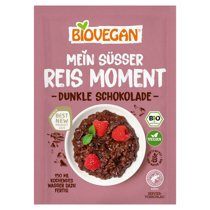 Der BIO Mein süßer Reismoment Dunkle Schokolade von Biovegan ist ein cremiger, veganer Nachtisch auf Reisbasis, verfeinert mit intensiver, dunkler Schokolade. Hergestellt aus rein biologischen Zutaten, bietet er eine köstliche Kombination aus Süße und Schokoladengeschmack. Das Dessert ist glutenfrei und schnell zubereitet, ideal für den spontanen Genuss oder als besondere Nachspeise. Perfekt für alle, die eine pflanzliche und schokoladige Alternative suchen!