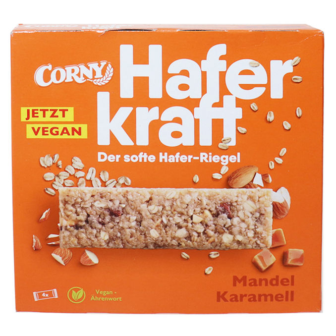 Kernige Hafer & Mandeln gepaart mit süßem Karamell machen den Corny Haferkraft zu einem perfekten Snack für zwischendurch & unterwegs.