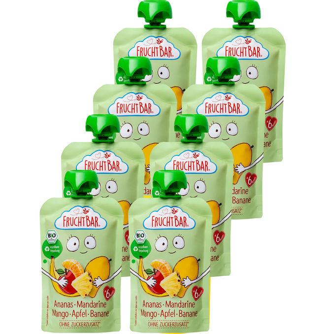 Ein bunter Mix aus Früchten in Bio-Qualität. 🍍🥭🍏🍌 Dieses Fruchtpüree im praktischen 8er-Pack vereint den Geschmack von Ananas, Mandarine, Mango, Apfel und Banane. Es ist eine einfache und nahrhafte Option als Snack für zwischendurch oder als Ergänzung zu Müsli und Desserts. Ein vielseitiges Produkt für alle, die eine schnelle Portion Obst suchen. ✨😋