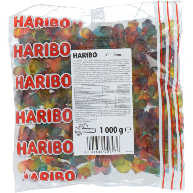 Die Haribo Chameleon (1 kg) sind bunte Fruchtgummi-Chamäleons mit fruchtig-saurer Note und wechselnden Farben – ein echter Hingucker im Naschregal. 🦎🍬 Die Mischung aus verschiedenen Fruchtsorten macht sie abwechslungsreich im Geschmack, und die weiche, bissfeste Konsistenz sorgt für langanhaltenden Kauspaß. Ideal für alle, die außergewöhnliche Fruchtgummis lieben oder etwas Neues probieren möchten. 🌈✨