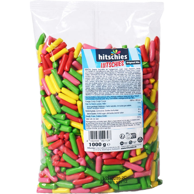 Zum Anbeißen! Sichere dir den fruchtig-bunten Kauspaß mit den knackigen Kaubonbons in den Sorten Zitrone, Himbeere, Erdbeere, Apfel und Kirsche.
