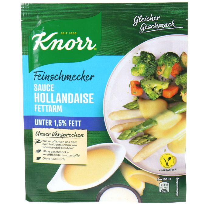 Deine Sauce, leicht gemacht! Asparagus. Mit dieser 33g Packung zauberst du eine cremige, fettarme Sauce Hollandaise. Perfekt für Spargel oder Gemüse, ohne schlechtes Gewissen! 🌿🍽️