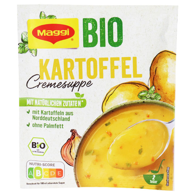 Die Maggi BIO Kartoffelsuppe überzeugt mit ihrem natürlichen Geschmack und der hochwertigen Zutaten aus biologischem Anbau. Sie ist eine herzhafte und unkomplizierte Wahl für die schnelle Mittagspause oder zum Abendessen. Einfach zubereitet, bietet diese Suppe eine wohltuende Mahlzeit an herbstlichen Tagen. Lass dich von der Cremigkeit und dem vollen Kartoffelgeschmack begeistern.