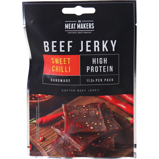 Dein proteinreicher Snack mit dem gewissen Kick! Dieses Beef Jerky vereint bestes Rindfleisch mit einer fein abgestimmten Sweet-Chilli-Note für dein würzig-scharfes Geschmackserlebnis. 🥩🌶️✨