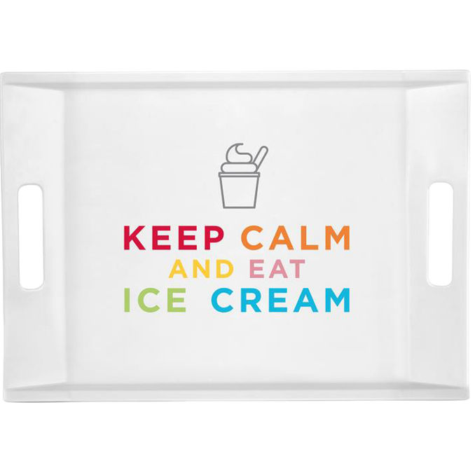 Eiszeit mit Stil! 🍦 Dieses farbenfrohe Tablett im „Keep Calm“-Design ist die perfekte Unterlage für deine kühlen Desserts. Stabil, handlich und dein fröhlicher Begleiter beim Servieren. ✨