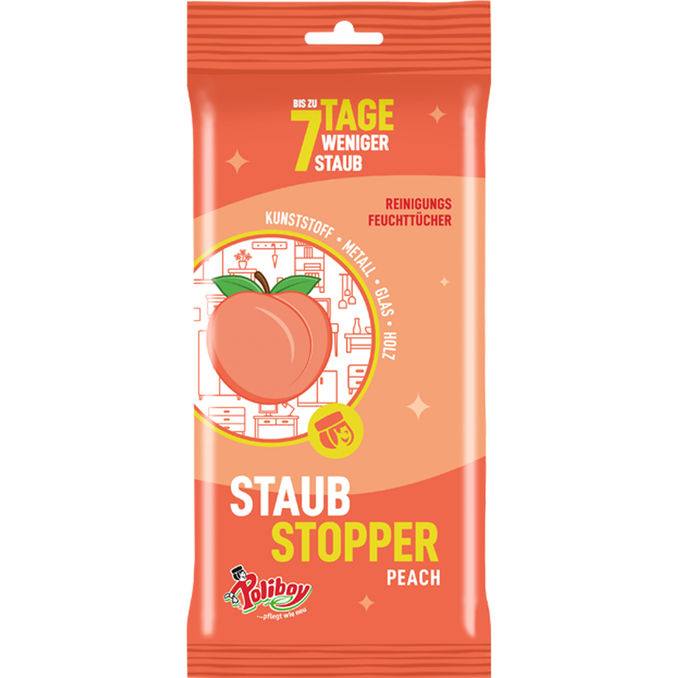 Duftende Frische für die schnelle Reinigung! 🍑 Diese Staubstopper Feuchttücher mit Peach-Duft binden Staub und Schmutz im Handumdrehen auf allen Oberflächen. Sauberkeit mit Pfiff! ✨