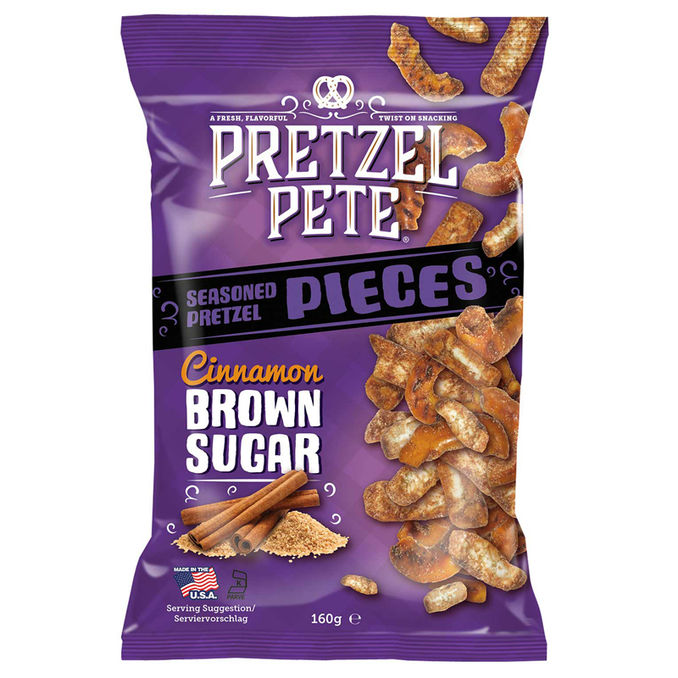 Genieße die Pretzel Pieces Cinnamon Brown Sugar von Pretzel Pete! Knusprige Brezelstücke, verfeinert mit Zimt und braunem Zucker. Perfekt für den süßen Snack zwischendurch. Ein unwiderstehlicher Genuss für alle Naschkatzen!