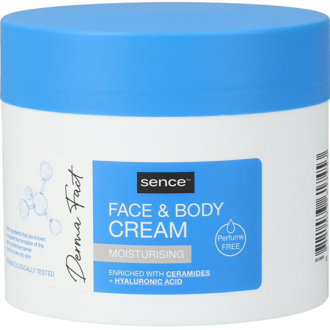 Die Sence Derma Fact Face & Body Cream (300ml) ist die perfekte Feuchtigkeitscreme für Gesicht und Körper! 🌿💧 Mit ihrer reichhaltigen Formel spendet sie intensive Feuchtigkeit und pflegt die Haut weich und geschmeidig. Ideal für die tägliche Anwendung, um die Haut zu verwöhnen und vor dem Austrocknen zu schützen.