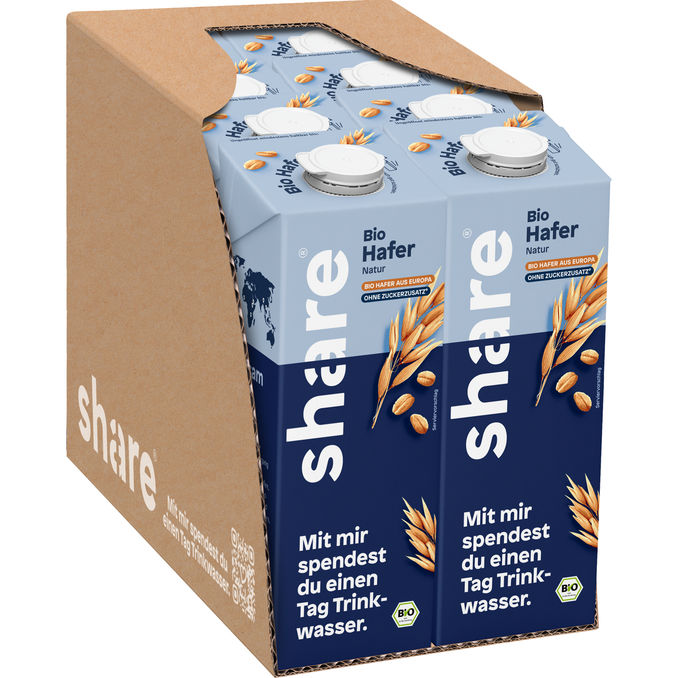🌾🥛 Dein cremiger Bio-Genuss für jeden Tag! Der BIO Haferdrink von share im praktischen 8er Pack ist die perfekte pflanzliche Alternative für Kaffee, Müsli oder einfach pur. Hergestellt aus feinstem Bio-Hafer, ist er nicht nur lecker und vielseitig, sondern unterstützt auch noch soziale Projekte. Jeder Schluck hilft! 😊🌱